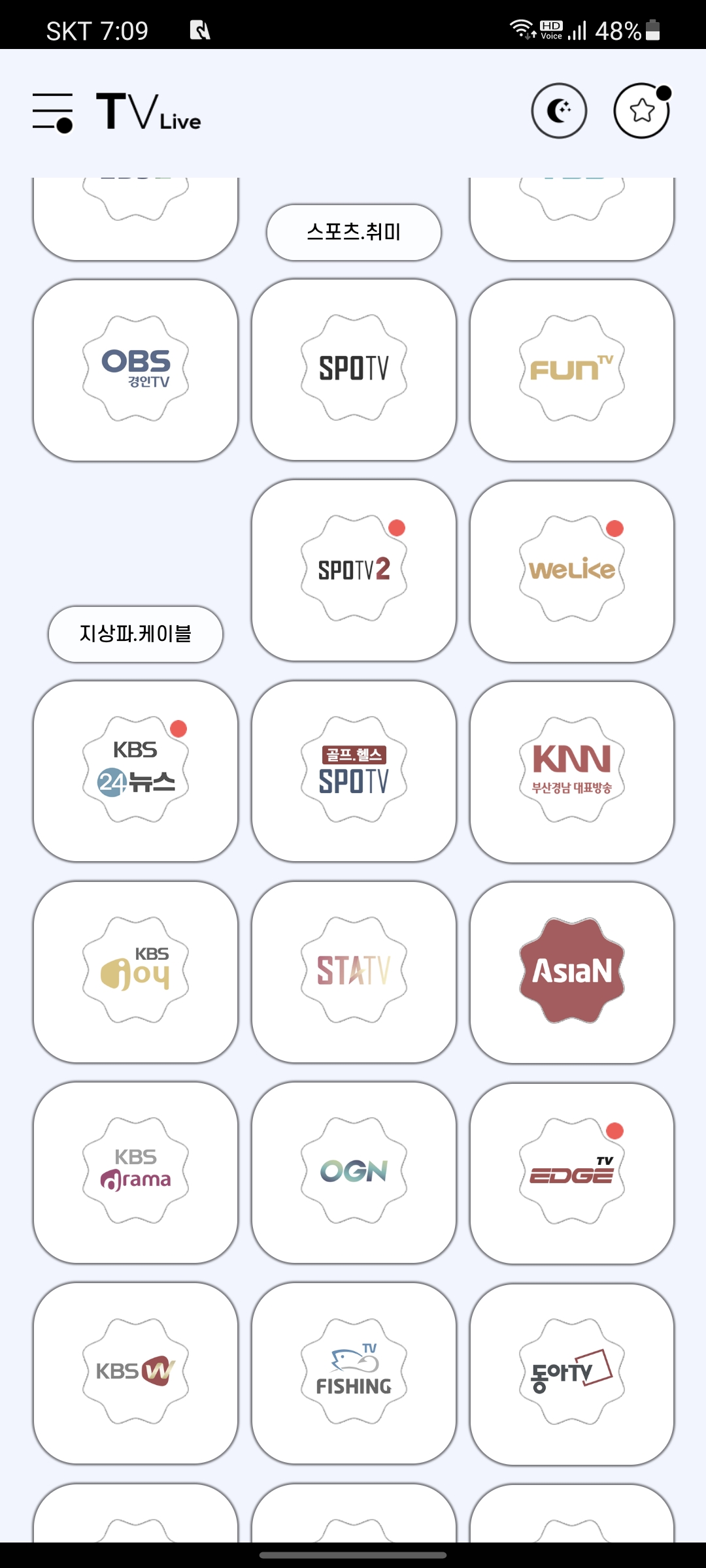 착한티비 어플을 사용해 보세요^^